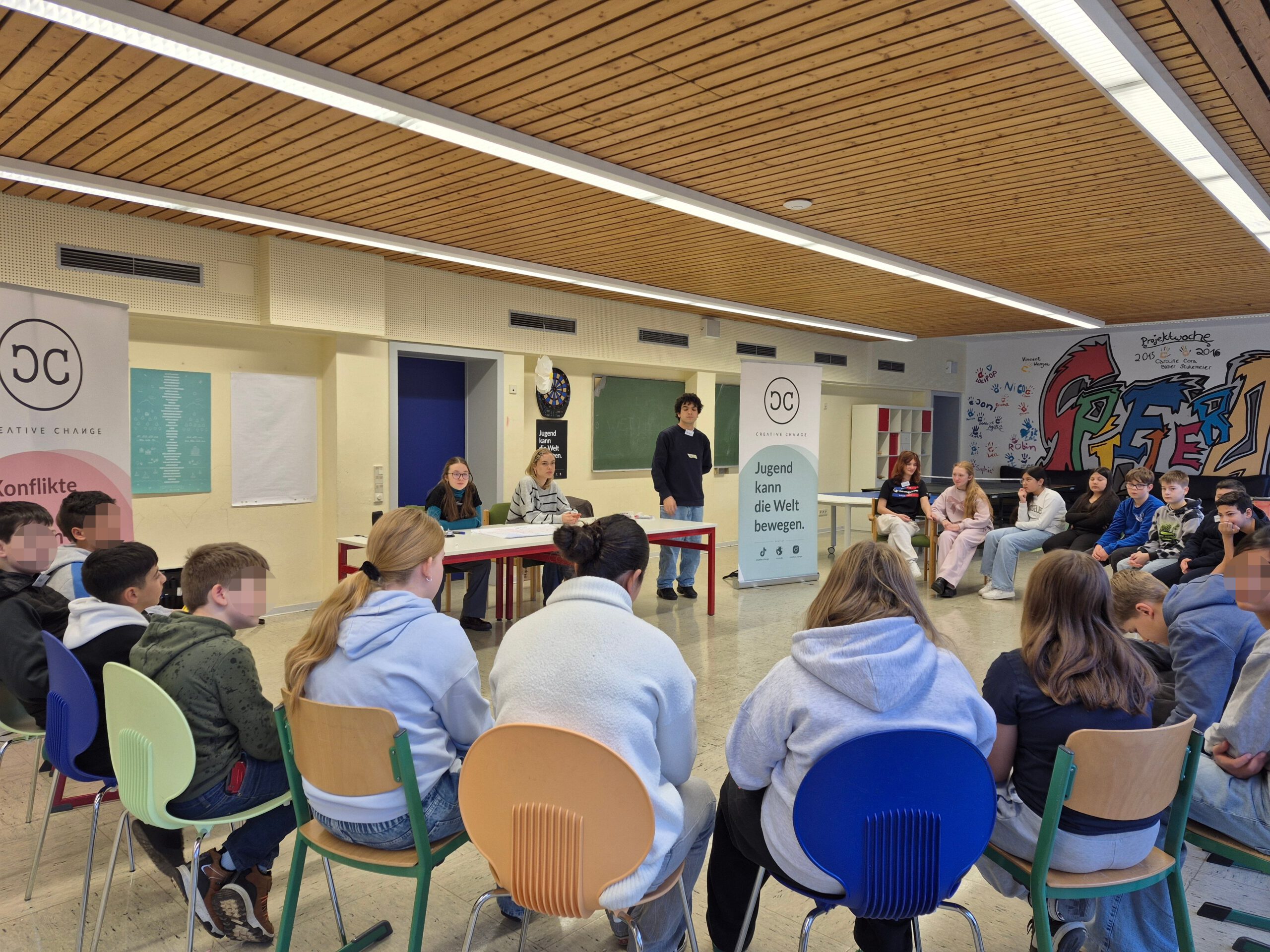 Mit großer Begeisterung blicken die Lehrkräfte, der Schulsozialarbeiter und die Schülerinnen und Schüler der Klassenstufe 6 der Ernst-Barlach-Realschule plus in Höhr-Grenzhausen auf eine intensive Projektwoche zurück, die in Zusammenarbeit mit dem gemeinnützigen Verein Creative Change e.V. durchgeführt und im Rahmen des Bundesprogramms „Demokratie leben!“ gefördert wurde. An vier Tagen setzten sich die Jugendlichen in drei Durchläufen mit zentralen Themen des schulischen und gesellschaftlichen Miteinanders auseinander: Demokratie, Freundschaft, Gruppendruck und Cybermobbing. Das theaterpädagogisch ausgerichtete Projekt zielte darauf ab, das Handlungsrepertoire der Teilnehmenden im Umgang mit alltäglichen Herausforderungen […]